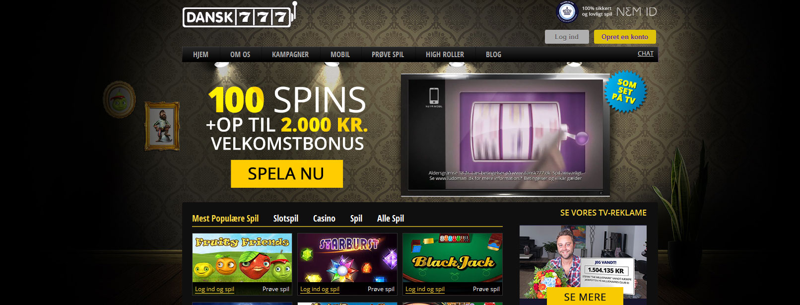 Dansk777.dk er et fantastisk online casino der kan spilles fra både PC og mobil samt tilbyder ektra tilbud til VIP kunder. Udover det kan du lige nu få 100 GRATIS Spins samt en bonus på 2,000 kr.