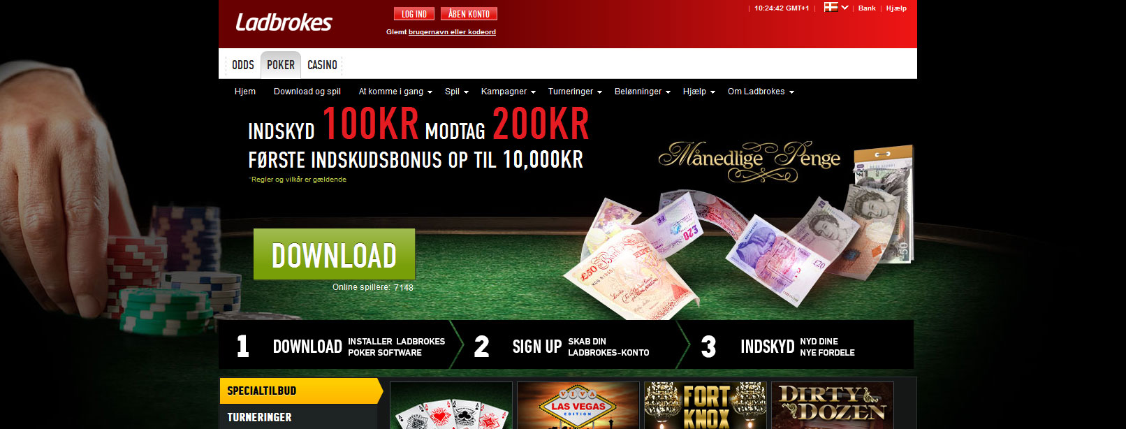 Ladbrokes.dk tilbyder poker på iPoker netværket og har løbende en masse kampagner såsom races, bonusser og meget mere. Du kan også finde nogle af nettets største turninger ugentligt.